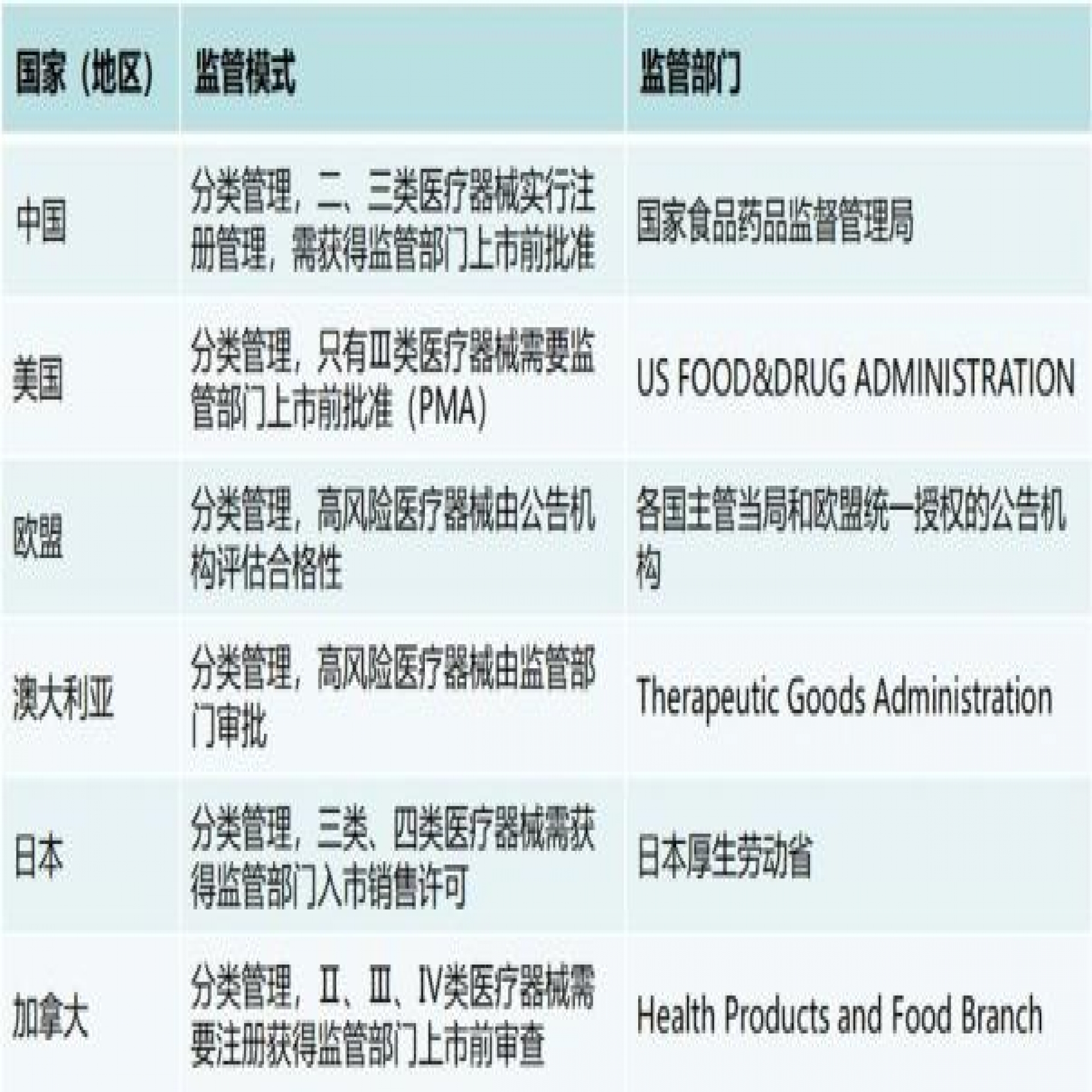 國內外醫療器械監管模式與監管部門對比