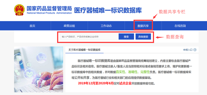 為貫徹落實黨中央、國務院醫藥衛生體制改革和治理高值醫用耗材改革有關精神,國家藥監局會同國家衛生健康委聯合開展了醫療器械唯一標識系統試點工作。按照工作部署,2019年12月10日唯一標識數據庫正式上線,2020年3月31日開放數據庫共享功能,以查詢、下載、接口對接等三種方式,供公眾、醫療器械生產經營企業和醫療機構等各方查詢使用。