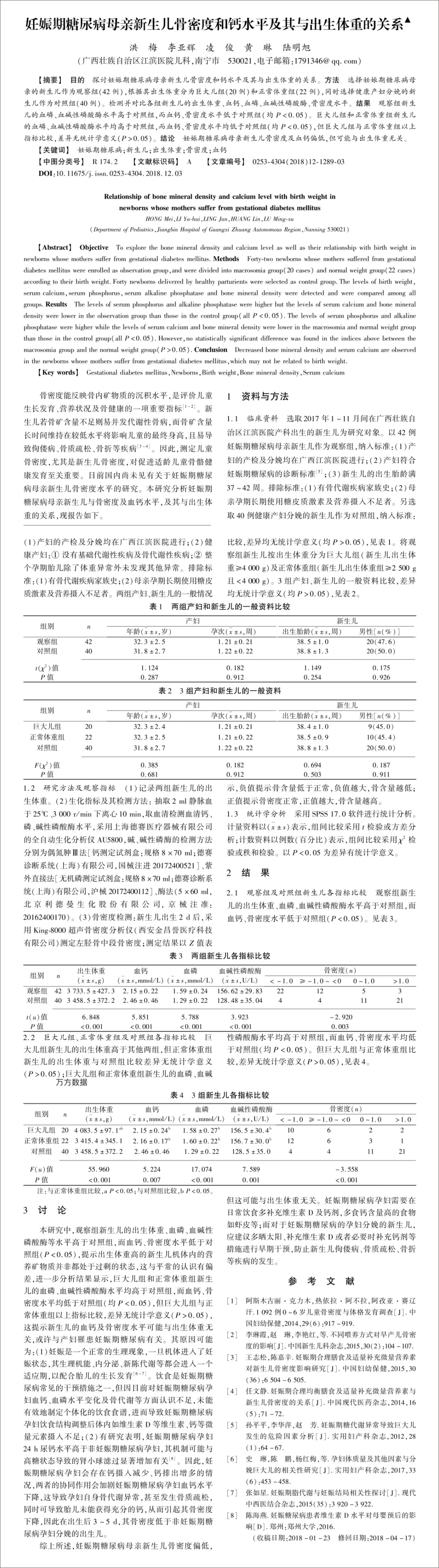 妊娠期糖尿病母親新生兒骨密度和鈣水平及其與出生體重的關(guān)系