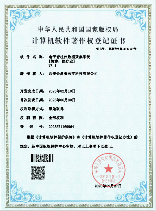 熱烈祝賀金昌譽“電子脊柱儀采集系統(tǒng)”登記成功